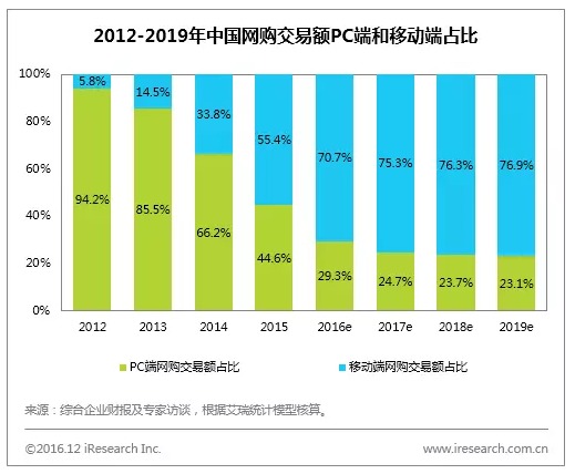 艾瑞分析认为,智能手机和无线网络的普及、移动端碎片化的特点及更加符合消费场景化的特性使用户不断向移动端转移。此外,各家企业持续加强移动端商品运营、丰富内容运营,不断提高用户转化、留存和复购是移动端持续渗透的重要原因。