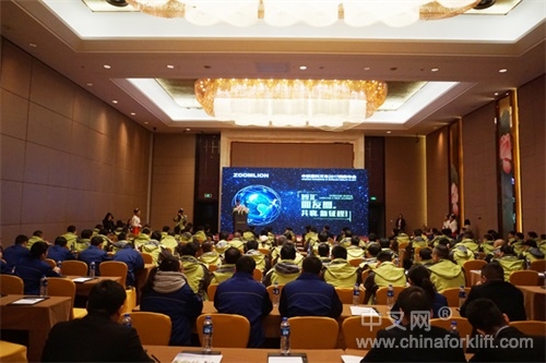 上午8:30点,会议在销售公司副总谭轶的主持下拉开了帷幕。根据会议议程,销售公司常务副总经理谭京伟作“砥砺奋进,携手发展”主题报告,分析了2016年中国叉车市场的严峻形势,总结了公司的市场运营情况,明确了2017年营销规划及营销管理思路。他表示:在当下,市场经济环境仍不乐观,企业依然面临严峻考验,以价格战取得短期效益并不能成企业持久发展的推动力,中联重科遵循创新与责任并重、机遇与发展并存的原则,开启创新式营销策略,不断强化激励机制,无论在营销策略、金融产品,还是租赁业务的拓展,都能够给代理商提供具体支持措施并加以执行,有效的帮助代理商提升业务范围,加强了市场竞争力。在以后,中联重科一如既往的为优质代理商提供品牌形象的建设及相关促销活动的推进。并不断加强中联重科的设备技改,提升产能和技术水平,力求以精湛的产品,优质的服务赢得市场,积累良好的市场口碑和品牌影响力。