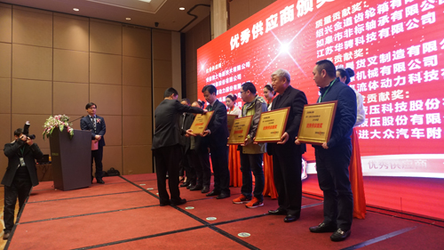 随后,大会举行了盛大的优秀供应商颁奖仪式,获奖供应商代表上台发言,表达了对中联重科叉车的诚挚谢意,并表示进一步加强与中联重科叉车深层次的合作,共赢发展,并衷心祝福中联重科叉车在2017取得更加辉煌的业绩。