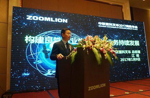 最后,中联重科工业车辆公司江明总经理在会上作《构建良性商业生态,促进业务持续发展》报告,讲述了中联重科叉车2017年目标设计与策略,2017年将进一步夯实公司经营管理基础,着力提升业务运营质量,聚集产品、市场,有效控制经营风险,达到构建良性商业生态,促进业务持续健康发展的经营目标。产品方面,内燃平衡重式叉车着力打造专业化细分市场产品经济高效能产品,电动平衡重式叉车注重现有产品的升级换代,往高效、环保、智能化产品发展,仓储类叉车重点满足市场多元化需求,打造经济、环保、高附加值产品。