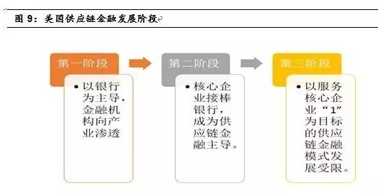 美国供应链金融产生于19世纪末,时值美国工业全面超越英国、德国成为世界第一工业强国之时。从模式上讲,美国供应链金融经历了三个阶段。