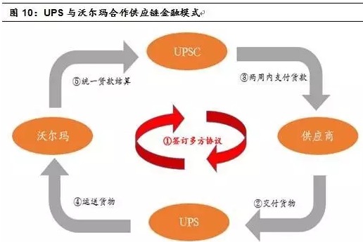 UPSC的供应链金融服务使得沃尔玛避免了和大量出口商逐个结算的交易成本,帮助供应商缩短了账期。同时扩大了UPS市场份额,在物流服务和金融服务上同时获益。