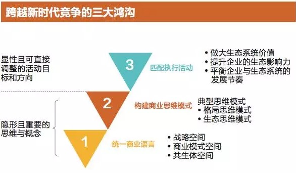 面对新时代竞争,企业须跨越三大鸿沟:统一商业语言、构建商业思维模式以及匹配执行活动。
