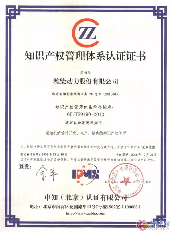 动力顺利通过了国家知识产权管理体系认证。这标志着潍柴的研发、采购、生产、销售、人力、财务、信息资源管理等相关知识产权过程已符合国家标准要求,这也将成为潍柴知识产权科学管理的崭新起点。