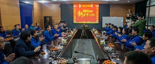 团拜会由总经理陈刚主持,董事长致新年贺词。何老师首先感谢大家2016年付出的努力,公司逆势而上,取得了丰硕的成绩;2017年已经到来,祝福大家新年好;公司在春节前刚刚召开2017年度经营工作会议,明确了“再接再厉、实现大跨越”的目标,今年必将是奋斗的一年,要求相关任务与措施尽快落地。