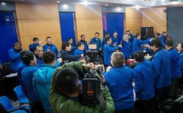 早上8:00,山河技术中心大楼B206会议室,气氛非常热烈,集团董事长何清华携众高管及50多位中高层济济一堂,正在召开新春开门红团拜会。会议室正前方是“金戈铁马闻征鼓,只争朝夕启新程——一切为了胜利”的对联,正后方是“‘分析总结、再接再厉,实现企业发展的大跨越’2017新年祝福墙”。每个座位上放有一个红酒杯,酒色闪耀,寓意红红火火……还有特意准备的新年红包。