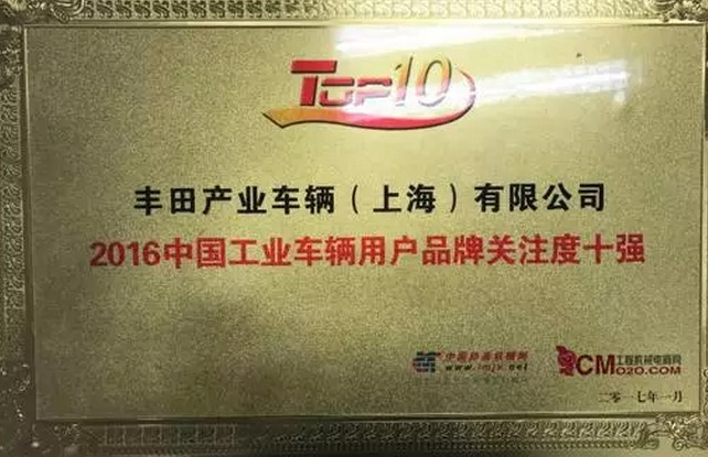 感恩客户的支持,丰田叉车又赢获行业殊荣。在中国工程机械网及工程机械电商网联合主办的“2016中国工程机械用户品牌关注度排行榜”中,经过客观公正的评选,丰田叉车荣膺“中国工业车辆用户品牌关注度十强”。