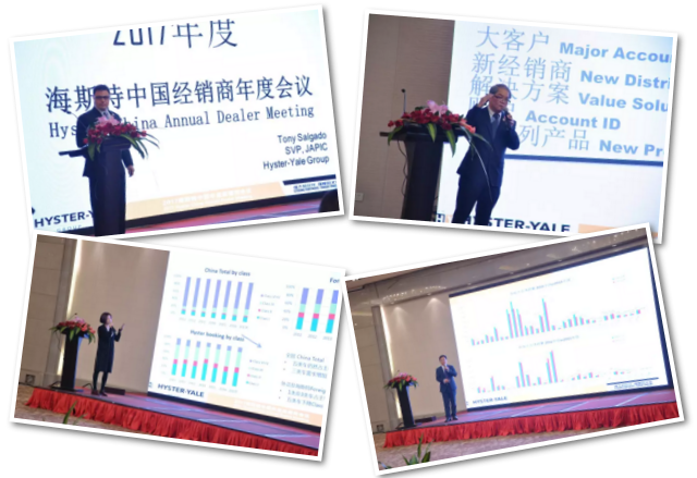 2月21日上午,JAPIC 区域高级副总裁Tony Salgado、大中国区总经理梁锦鸿先生、销售总监赵松先生、大客户副总监刘国胜先生和经销商发展及市场经理宋园园女士分别上台发言,对2016年中国的业务、市场一一作了回顾,并对海斯特全球的业务,市场及中国区未来一年的业务发展给予了指导和建议。