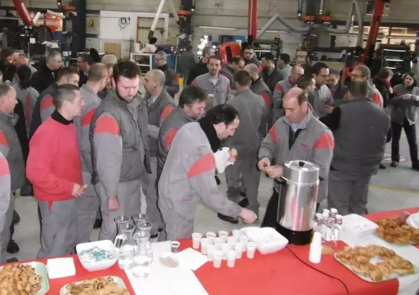 法国拉耶(Laillé)制造工厂趁这个机会于1月24日为工人们组织了一次庆祝早餐。一些来自昂斯尼(Ancenis)工厂的同事也到场祝贺。