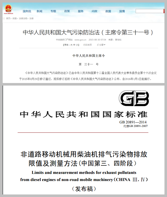 为防治大气污染,保护和改善生活环境和生态环境,保障人体健康,促进经济和社会的可持续发展,2015年8月29日第十二届全国人民代表大会常务委员会第十六次会议第二次修订了《中华人民共和国大气污染防治法 》,并于2016年1月1日开始生效,新生效的《大气污染防治法 》明确将非道路移动机械纳入管理范围,《大气污染防治法》从生产制造、销售、使用、试验各个环节进行监管,强化地方政府的监管责任,新《大气污染防治法》将采取强硬手段,加强震慑,加大处罚,让违法者付出沉重代价,增加其违法成本,对污染企业产生巨大的震慑作用。