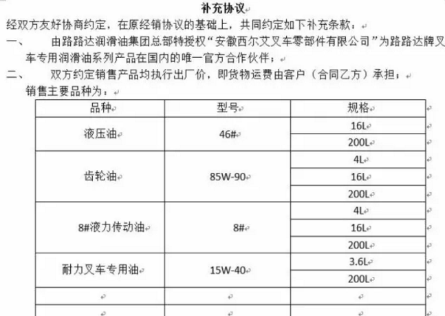目前,路路达润滑油授权西尔艾销售的叉车专用润滑油系列涉及产品的种类为:液压油、齿轮油、8#液力传动油、耐力叉车专用油这四类,并且西尔艾成为销售该系列产品在国内唯一官方合作伙伴。