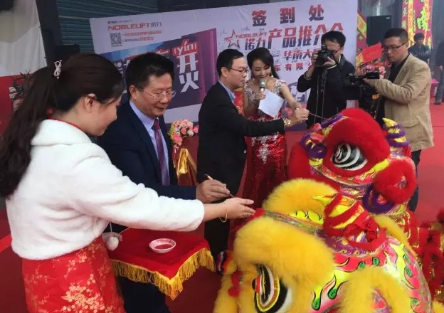 随后华南大区的推介会在有着浓浓地域民俗特色的岭南醒狮仪式中拉开序幕。本场推介会有幸邀请到了诺力股份董事长丁毅先生为活动开场醒狮点睛,并和公司副总经理刘宏俊先生、经销商代表及嘉宾共同剪彩,为本次大会讨得彩头。