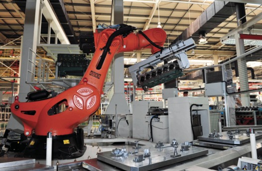 在锡柴重机部,德国GROB机床、瑞士ABB机器人、美国GORBEL等世界顶尖设备随处可见,这些设备集柔性化、集成化、自动化于一体。自动化总装线有179个工位,其中,Robostar三轴机器人负责给气缸套自动涂胶,保障气缸套装配的润滑和质量,整线自动化率达28%。6DM机加线60道工序,自动化率更是高达78%。同时,在机加工生产线还配置了可对加工精度进行全数采集分析和实时控制的装备,在装配线配置了自动化拧紧、涂胶、输送、装配等设备的生产线,并配备了关键尺寸、扭矩、外观、渗漏等复验装备。