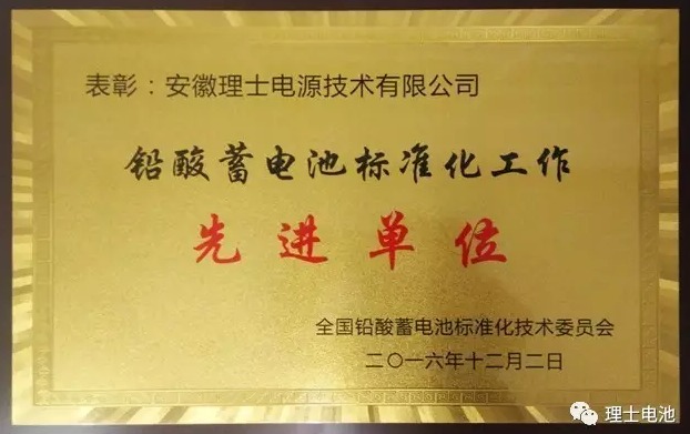 安徽理士荣获“铅酸蓄电池标准化工作先进单位”荣誉称号