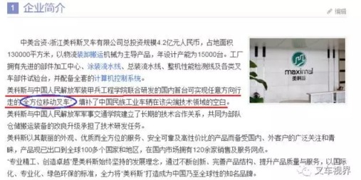 国内的“全方位叉车”仅有浙江美科斯叉车一家生产,配套于国内的国防工业。