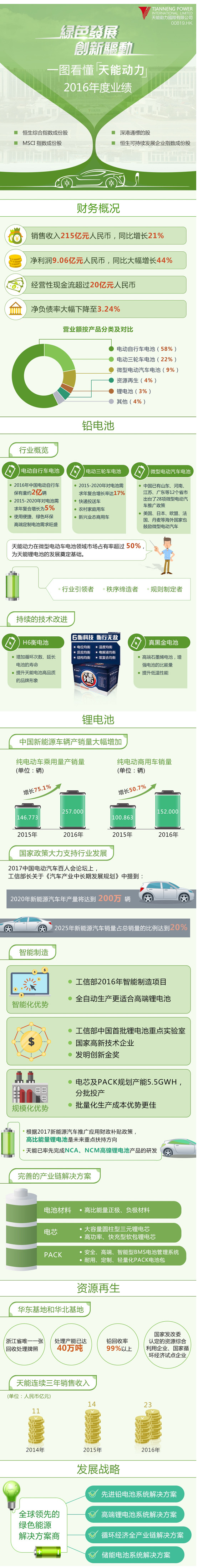 “绿色发展,创新动力” 一图看懂天能动力2016年度业绩