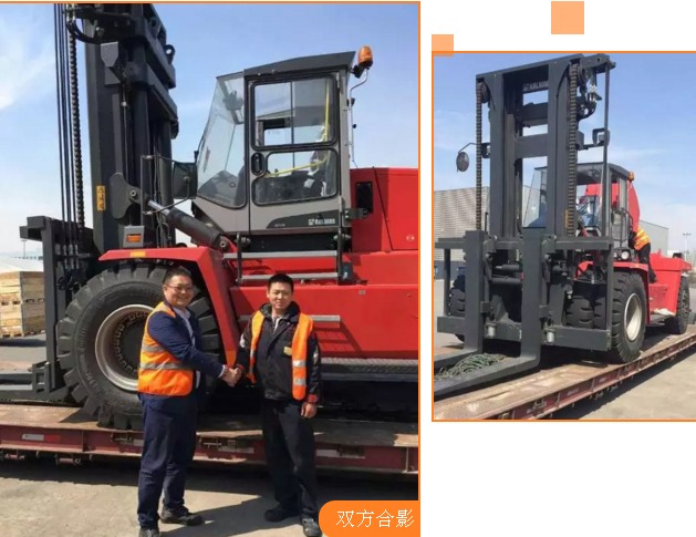 近日,在集团全体前线将士们的共同努力及后台相关职能部门的鼎力配合下,国内市场捷报频传。2017年4月1日,集团滨海新区分公司销售经理万雷成功向天津地区客户交付卡尔玛(KALMAR)25吨叉车,成果喜人。