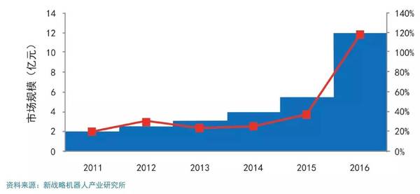 另外,需要强调的是电商快递行业物流智能化的快速发展,带动仓储AGV的崛起与大量的应用,2016年仓储AGV销量接近1500台,占整体AGV销量的15%。(注:上面部分数据采用新战略机器人产业研究所发布的数据)