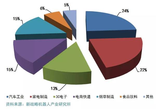 从AGC 销量来看,其中汽车行业使用占比超60%,家电制造行业占25%左右。其中3C行业的应用较去年稳中有升,3C行业的机器人使用与推广处于萌芽阶段。