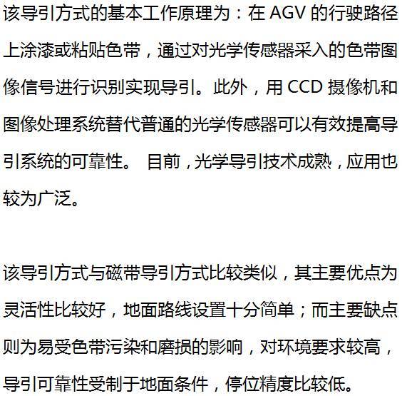虽然AGV导引方式的种类很多,但目前得到应用或具有应用前景的AGV导引方式主要包括以下几种类型: