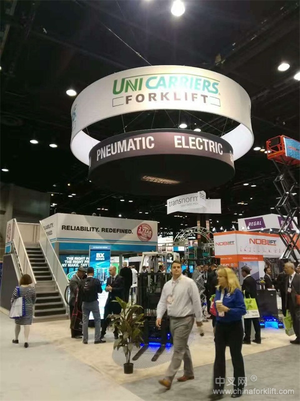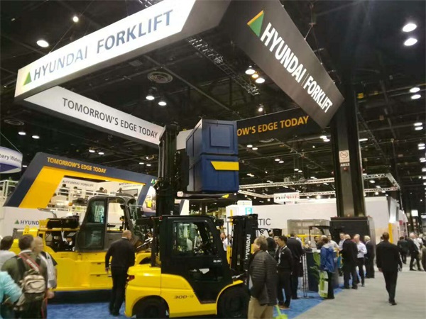 2017ProMat展会现场世界国际品牌叉车制造商云集,包括有:林德、永恒力、海斯特、优嘉力、克拉克、耶鲁、小松、斗山、现代、雷蒙(Raymond)、蓝道(LANDOLL)、Flexi、Bulmor等等国际品牌叉车制造商,为ProMat展奉上了一道壮丽的物流装备佳宴!集创新与智能与一体的行业物流设备以全新的面貌呈现给世界的来宾。