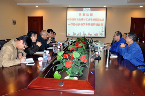 3月29日,中国机冶建材工会副主席毛迎春一行,在安徽省机械冶金工会主任吴海明等领导陪同下来到安徽叉车集团调研。集团公司党委书记、董事长张德进对机冶建材工会领导的来访表示欢迎。