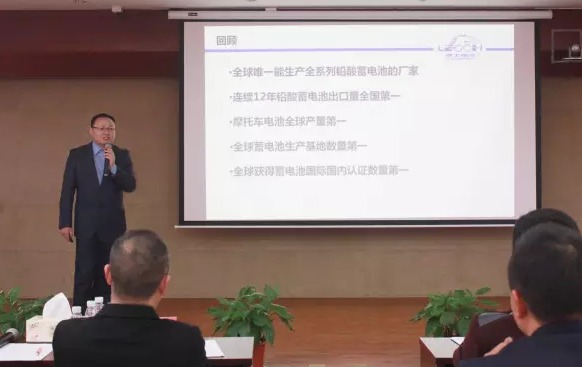 在一番热闹参观后,会议在众人的期待中继续召开。会上,陈总详细演讲了理士国际的成长过程与企业实力。理士国际凭借着多项第一,成功将理士品牌谱写到全球各地。同时陈总对动力电池行业发展前景进行了透彻的分析。未来动力电池市场需求将会持续增长,这既是机遇也是挑战!