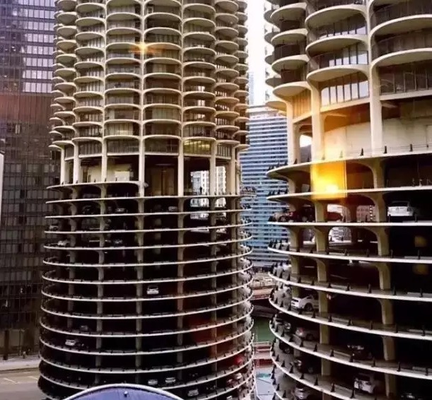美国芝加哥的停车场,大家瞧瞧,像不像啃过的玉米棒子?