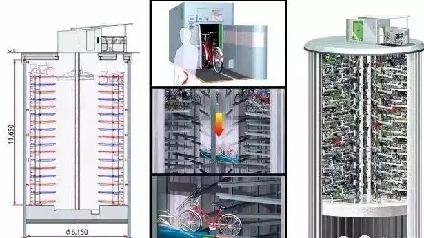 相应的,把圆柱体放到地下就是同样原理的地下停车场了。我们也看到很多,比如日本的自行车停放!