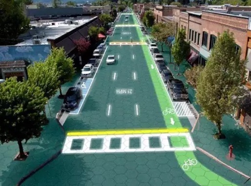 前期66号公路的升级仅限于一段公路,Solar Roadways公司旗下这款特别设计的太阳能面板中嵌有光伏电池板,能利用太阳能发电,不但可以承受汽车的重量,还搭载有内置LED灯,可以取代交通标识。