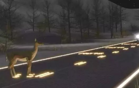 ▲LED发光层产生的智能路面指示灯