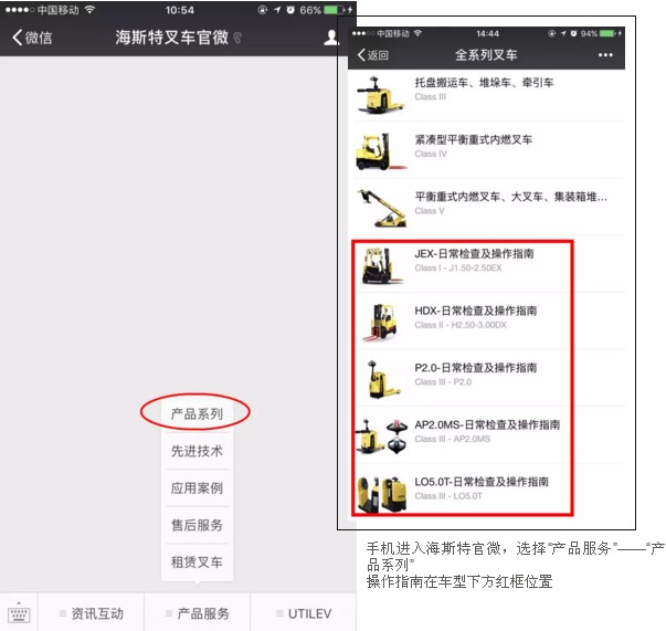 海斯特车型操作指南现已补充更新三款车型:步行式电动托盘车、站驾式电动托盘车、电动牵引车。可以通过扫描二维码的方式直接查看该车在操作过程中所需注意的事项。为客户提供更便利的服务。