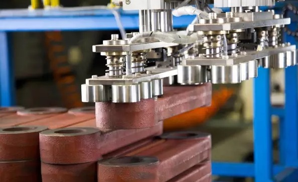 在海天宁波工厂的连杆加工产线,选用了ABB机器人IRB 6700——负载高达155公斤,在物料搬运、上下料及点焊应用中工作范围得到最优化的一款ABB机器人。2台机床间配备一台ABB机器人,机器人可自动更换治具,完成不同规格连杆的自动上下料。