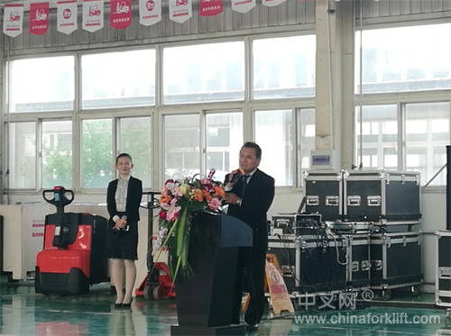 交流会一开始由丰田产业车辆(上海)有限公司总经理渡边高伸先生致辞,他首先祝贺天津丰田叉车公司新地址开业大吉,并谈到丰田叉车在过去的2016年取得了不俗的业绩,在全球叉车市场占有21.6%的市场份额,在日本叉车市场占有49%的市场份额,因此有必要进一步加强在中国市场的销售力度,同时也是举办此次技术交流会的目的所在。
