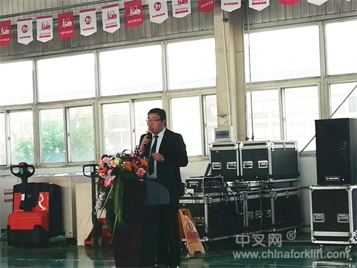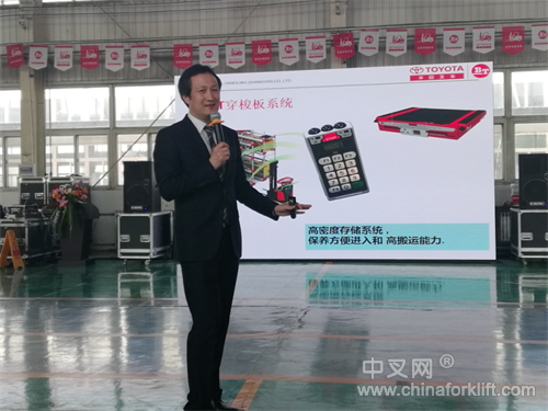 接着由来自丰田产业车辆(上海)有限公司产品营销部的邓琨先生向来宾们介绍了丰田产业车辆的历史和在中国的发展情况,目前丰田产业车辆除上海总部之外,在天津、广州、大连设有3家分公司,并在全国29个省市拥有29家经销商,65个销售网点,为全国各地的丰田叉车用户提供完善的销售和售后服务。同时,他还向参加会议的经销商和叉车用户详细介绍了丰田叉车的产品线和物流解决方案。