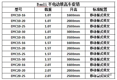 1. 促销产品:Baoli半电动堆高车