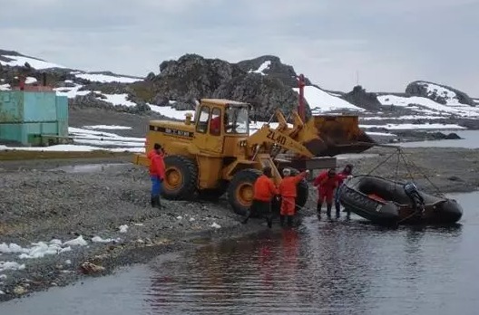 ▲厦工装载机在南极中山站进行吊装作业