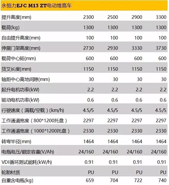 M系列又加入新成员——EJC M13 ZT,载重1.3吨的双门架电动堆高车。两级门架,四种提升高度可选(2300mm, 2500mm, 2900mm, 33...