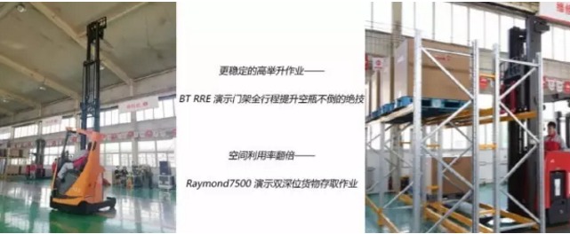 为应对仓储企业与日俱增的存储成本压力,丰田在现场还为大家带来了两款密集存储解决方案——双深位和穿梭式两种存储方式的演示。首先登场的是,Raymond7500双深位前移式叉车,双剪刀叉式的货叉前移方式加上最高可达11米的举升高度,令其能够完美配套双深位货架实现横向和纵向的空间利用率提升。现场7500驾驶人员演示了将货物从整理区域运至存储区的搬运作业和向双深位货架进行货物补给的存储作业。之后登场的是真正的无通道存储方式BT穿梭板。现场,向配合穿梭板完成存取货作业的是BT RRE和丰田8FBE三轮电动平衡重叉车。穿梭板具有85%的极致空间利用率,配合FIFO/FILO的库存管理方式、可实现同步且高效的叉车作业和穿梭板作业。