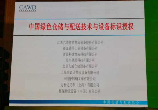 同时授予中国绿色仓储与配送技术与设备标识授权证书。