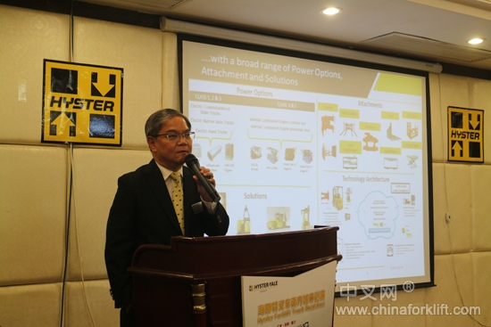 梁锦鸿总经理在致辞中说到:海斯特-耶鲁集团有90年的历史,海斯特拥有三大知名品牌,海斯特、耶鲁、优特力,在全球每年销售超过五万台叉车。海斯特叉车享有“强悍的叉车”,其坚固、耐用的产品特性深受客户喜爱,产品行销130多个国家,600多个行业。为了迎合物料搬运的需求,为客户提供更全面的物料搬运产品及服务,除了叉车之外,还有属具、氢气电池燃料业务及车队管理系统。政府提出的“一带一路”促使中国经济的发展,带来更大的商机,我希望能得到客户更大的信任与支持。本次活动海斯特展示了一系列的叉车,希望通过此次的交流,能得到大家更多的反馈,让海斯特叉车更好的服务于各行各业,实现更大的价值。