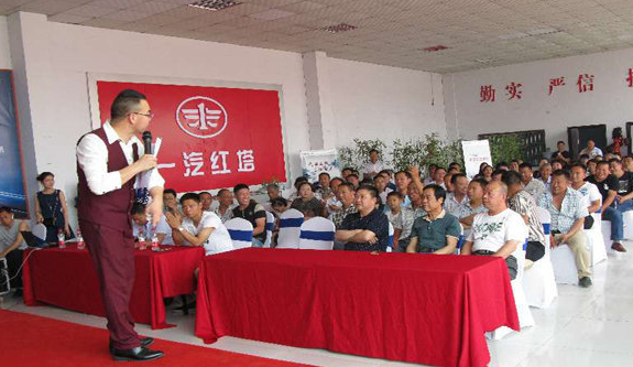 活动现场一汽红塔河南大区经理吕游发言讲话,代表一汽红塔公司向今天能在百忙之中参加本次推介会的各位一汽红塔用户、各位嘉宾朋友表示衷心的感谢。一汽红塔公司作为一汽集团专业生产轻型商用汽车的企业,一直致力于生产世界上最有价值的、用户最信赖的产品,成为世界第一的轻型商用车制造商。吕总详细介绍了一汽红塔汽车特点,目前一汽红塔汽车拥有霸铃、公狮、金铃、经典、蓝舰五大系列产品,各系列产品配置丰富均符合国家排放标准要求,能够最大限度满足不同客户的使用需求。现场客户对一汽红塔产品时尚的外观,舒适的驾乘感受,强劲的动力表现以及灵活的操控性和高性价比给予了充分肯定。