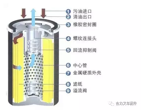 所以,为了减少引擎部位的磨损,更换机油时一定要更换机滤,我们先来了解一下机滤的通身构造和工作原理:如图所示