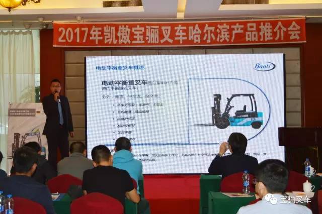4月21日,哈尔滨地区约100位客户参加了当天的推介会。通过聆听宝骊叉车的发展历程,以及关于宝骊自主研发的平衡重式内燃叉车和电动叉车的详细讲解,在场客户对宝骊叉车有了全方位、深入的了解,并当场签下8台订单,为开拓哈尔滨市场打响第一炮!
