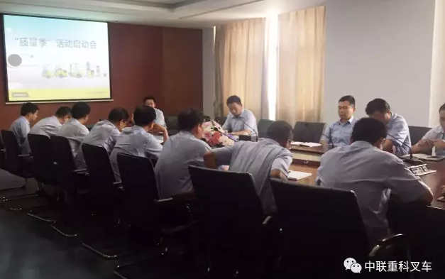 2017年06月02日下午,中联重科工业车辆公司召开2017年“质量季”活动启动会,会议由江明总经理主持,该活动的主要目的为进一步贯彻中联重科总部质量精神,落实人人参与质量管理、人人肩负质量责任,推行质量技术和方法,促进公司产品质量的提高,提升公司品牌形象,增强全员质量意识,营造质量文化氛围,将全体员工的创新力凝聚到质量工作中。