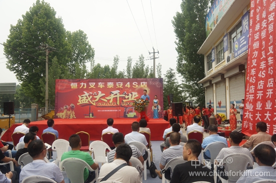 恒基集团股份有限公司总经理郑洪波在开业致辞中讲道:泰安地区有着悠久的历史,经济发达,可谓人杰地灵,相信恒力叉车4S店的落实,将为泰安地区的客户提供最优质的服务、最物美价廉的销售。泰安4S店的成立,标志着恒基集团三年发展规划的目标全面完成,我们将在第二个三年计划之内创建相应的电动叉车平台,同时提升产能。