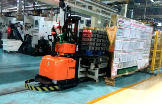 艾吉威无反射板激光自主导航叉车产线应用