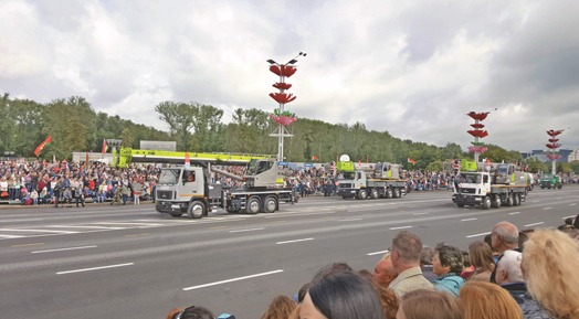 在民用车辆方队中,4台身披绿灰涂装的产品格外引人瞩目,据了解,这是由来自国内装备制造企业中联重科与白俄罗斯著名企业MAZ集团合作生产的4台高端装备组成的仪式方队。它们接受了白俄罗斯总统卢卡申科的现场检阅。