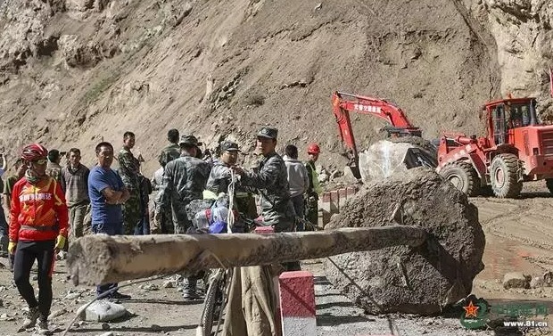 南疆军区某通信团和驻地武警某中队闻讯而动,出动120余名官兵、30台机械车辆星夜兼程紧急驰援受灾地域,展开国防光缆和公路抢修工作,并为沿途因泥石流、塌方滞留的群众提供饮食安置。