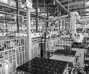 天能集团智能化生产线助推传统产业走向高端化,图为全自动电池生产车间。谭云俸摄/光明图片